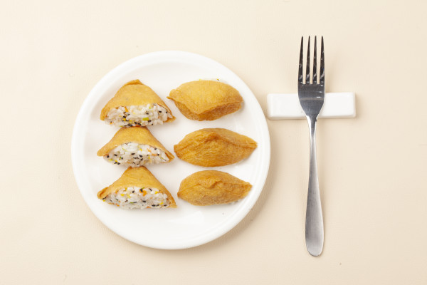 10. 유부피를 살짝 벌려준 뒤 양념된 밥을 적정량 안에 넣으면 유부초밥 완성입니다.